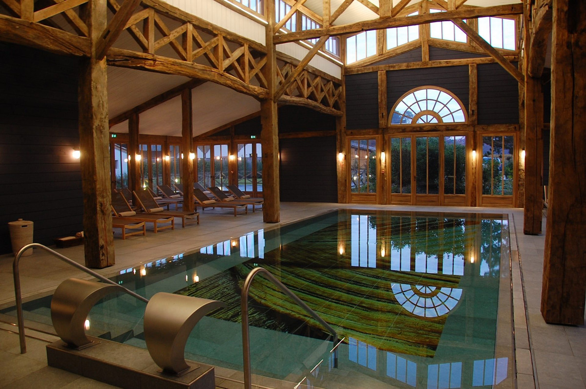 Sous une magnifique charpente de bois avec vue souveraine sur la nature environnante, un bain thermal et un hammam vous promettent des minutes de détente étirées à l’infini.